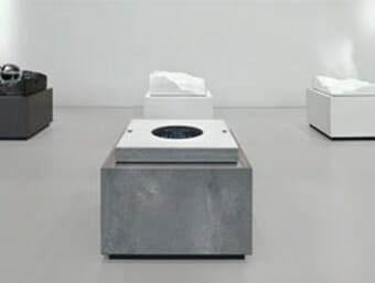 In the outer courtyard, three kitchen islands that were presented at Interior Design Show Toronto are on display. Each island represents a changing state of water and is formed in layers, referencing the earth’s natural geography. Vanilla Noir, Alpine Mist and White Attica are three of the colors used in the art display.
