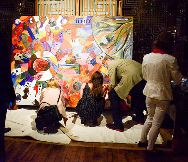 Guests of the event celebrated the evening with music, food, fun, and color with the opportunity to purchase featured artists’ work as well as bring out their own inner artist with participation in an interactive mural. They were also offered a chance to win their favorite collaboration piece of the evening in a social media sweepstakes and received commemorative keepsakes made from Caesarstone and designed by a local sculptor.