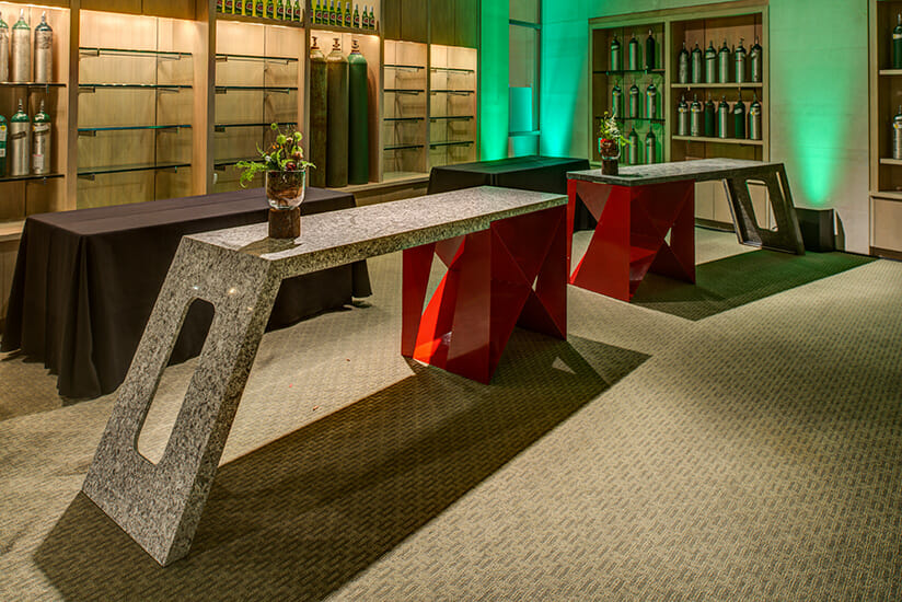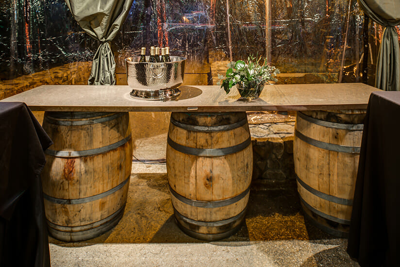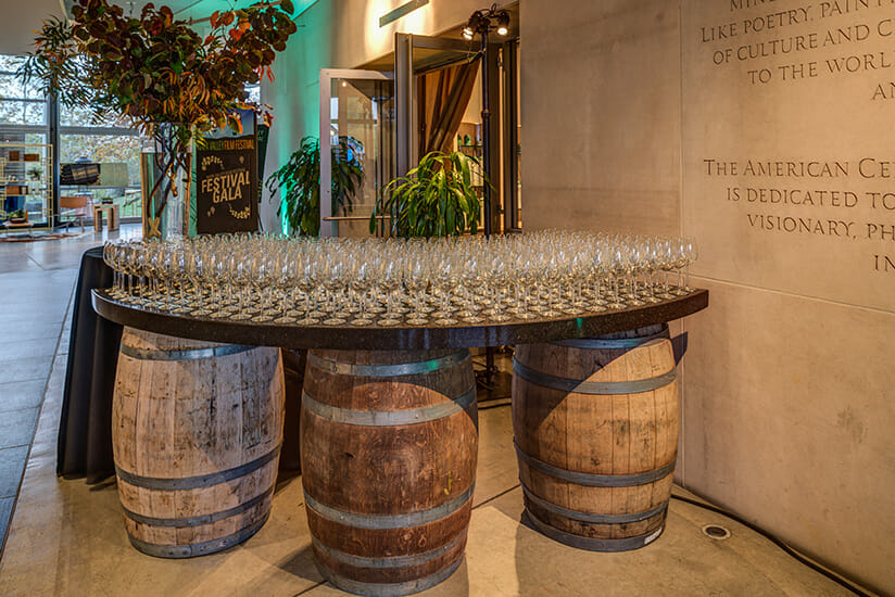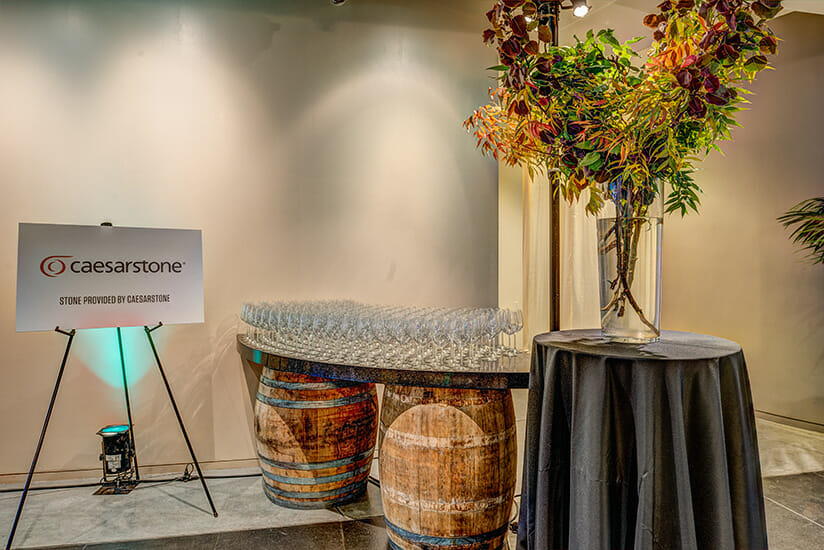 Festival attendees viewed Caesarstone pieces created especially for the festival including a bench, one-of-a-kind Geo Bar, two Cooks Tables, and an Ice Bar throughout the Film Maker’s Lounge and near the red carpet with celebrities such as Kevin Costner, Ralph Maccio, and more. Custom made Caesarstone surfaces were placed atop wine barrels that served unique tables throughout the festival.