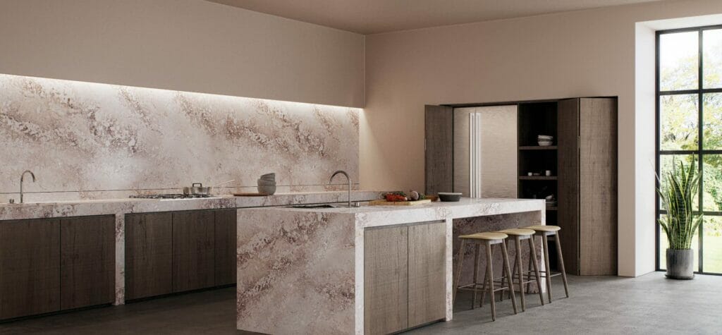 Caesarstone’s quartz material provide an exotic and unique quality with collections that are updated every year according to trends.