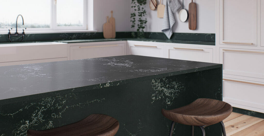 On the other hand, the bold, mysteriously dark 5820 Darcrest, with its deep, earthy base, makes a striking statement. Much like exotic granite countertops, high-end quartz products like 5820 Darcrest can be used in the whole kitchen counter and island area to create a strong, coherent look.