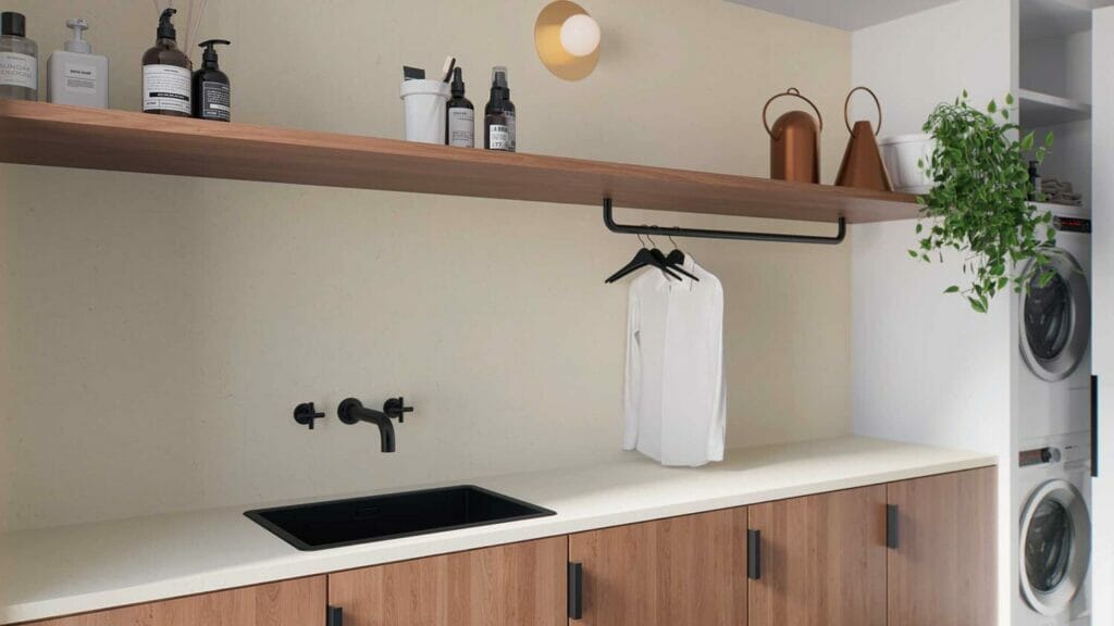 On the other hand, to create a traditional but timeless style, Caesarstone’s 1001 Riverlet (from the Pebbles Collection) with amber hues will complement classical design throughout the kitchen.
