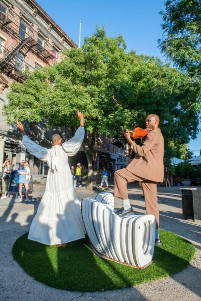 A dancer and musician deliver a short performance. Photography by Matthew Carasella.