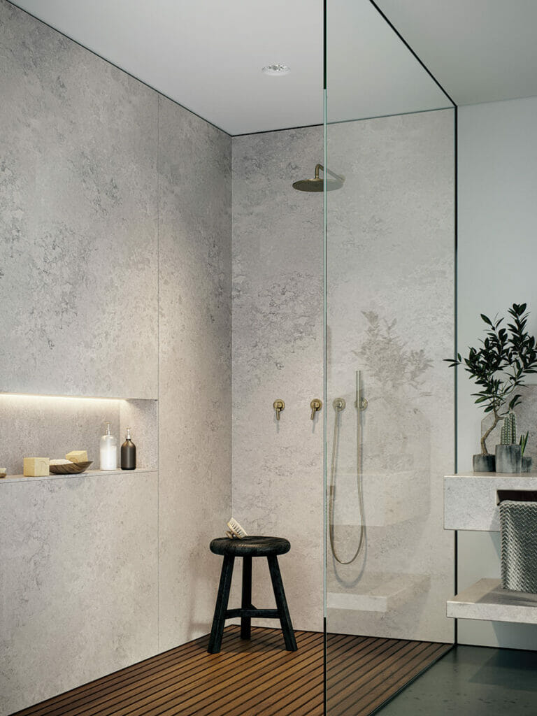 On the other hand, homeowners who prefer lighter shades of gray can opt for a product like Caesarstone’s 4001 Fresh Concrete or 5000 London Gray. These lighter tones blend well with stark, crisp whites and offer a stylish bathroom appearance.
