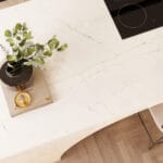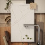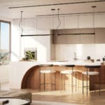 The classic-style structure of the cabinets blends in perfect harmony with the exposed wood of the island and floors. This creates a refined looking kitchen that is both rustic and romantic.