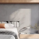 Caesarstone Lioli Porcelain Cladding with 231 Charcoal Leather on Bedroom walls