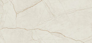 A spectacular embodiment of the marking of time on a neutral off-white base, bursting with a lively criss-crossing of oversized veins and fine crackled lines that feature ancient copper overlay, textured golden streaks, and primeval earthy sediments, in an outstanding composition unseen before, with a sleek and soft Silk finish.