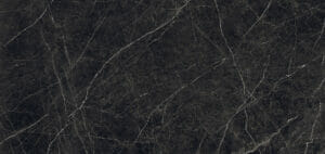 A midnight-black base showered with chalky-white lines that strike like lightning, interlaced with finer veins that move across its emotive black base, layered with the earthy impurities of crystallin textures that evolve over time in natural marble, in tactile Ultra-Rough finish.