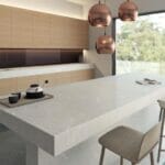 Continuous design matches veining and patterns to create a unified look with minimal seams. Countertops, floors, and walls feel spacious, look elegant, and are easier to maintain.