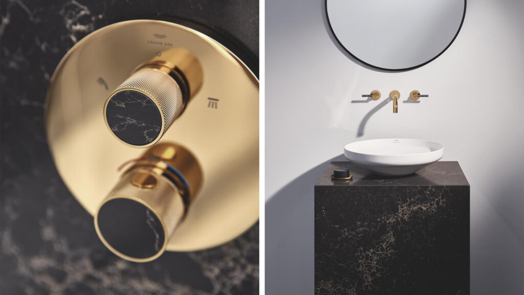 Allowing architects and designers to choose from a carefully curated range of colors, materials, finishes, and handle designs, GROHE SPA chose Caesarstone to craft faucet handles, inlaying the brand’s timeless and durable quartz designs. Caesarstone has a long-standing reputation for designing and producing the finest engineered surfaces, which are used throughout notable residential and commercial buildings around the world. The luxurious faucets of the GROHE SPA Atrio and Allure Brilliant Private Collections can be paired with Caesarstone countertops in the same design and finish to create a perfect, cohesive scheme between the sink countertop or bathroom vanity and faucet.