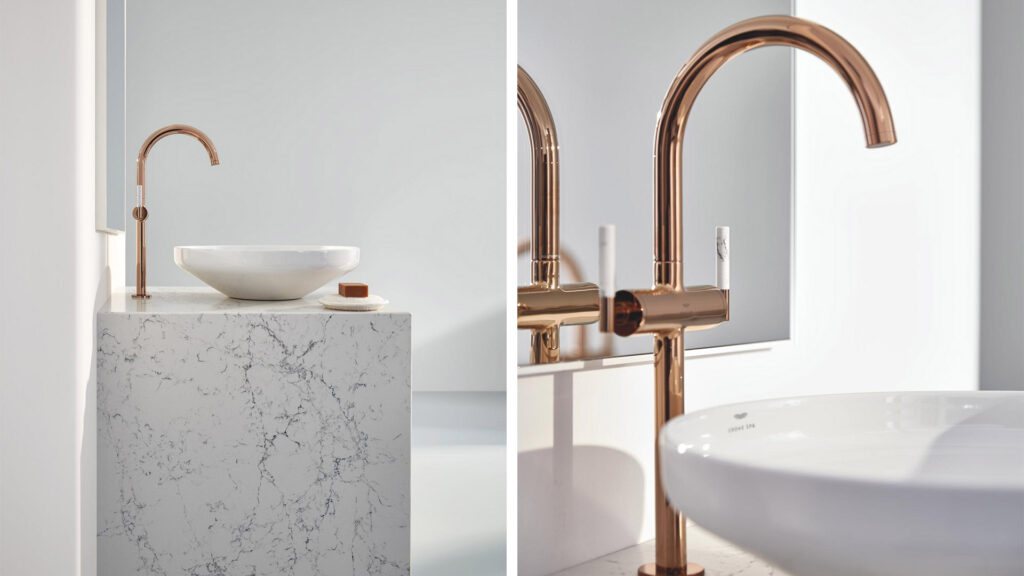 Caesarstone Global Head of Design, Mor Krisher, says, “We are used to seeing Caesarstone designs on a large scale in bathroom and spa environments. What is delightful about this partnership is the clever intricacy and precision that GROHE has used to design their new Atrio and Allure Brilliant Private Collections. A highly thoughtful approach sees Caesarstone surfaces successfully translate to a smaller scale, bringing a wonderful unity between faucet and countertop when combined with Caesarstone of the same design. The result is a complete look of singular harmony.”